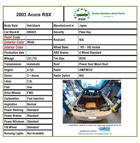 2002 - 2005 ACURA RSX Hatchback Steering Column Floor Shift Ignition Assembly T