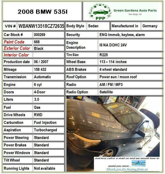 • Find our phone number on Google and search for Green Gardens Auto Parts. Please call or text us and we will respond fast.