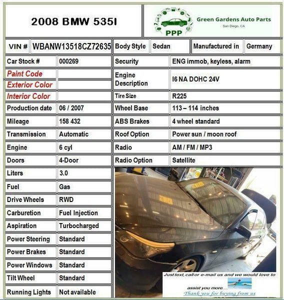• Find our phone number on Google and search for Green Gardens Auto Parts. Please call or text us and we will respond fast.
