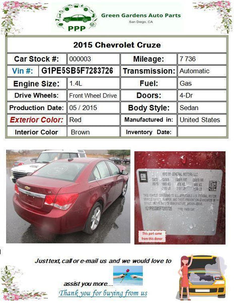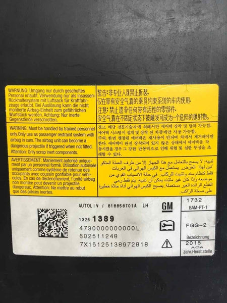 2011 - 2016 CHEVY CRUZE Air Bag Front Left Driver Seat Side Airbag 13251389 LH J