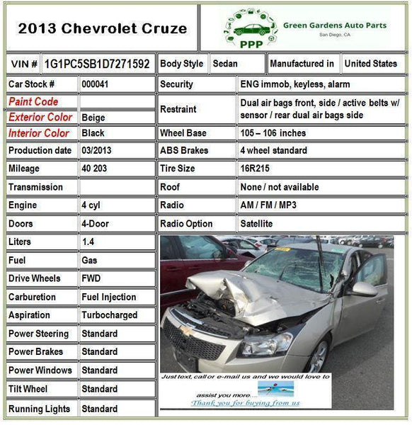 Please ensure that a VIN number is included with your order to minimize receiving the incorrect part.