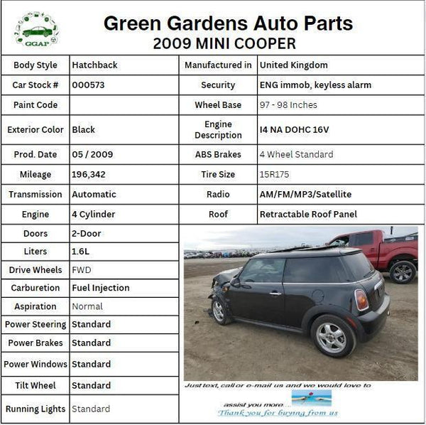 2007 Mini Cooper Salt Hatchback 2-Door 1.6L 1598CC l4 GAS DOHC Naturally Aspirated