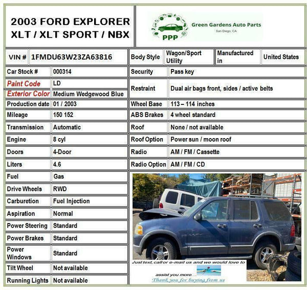 • You MUST have a working phone number for freight shipments; we will call you to confirm part fitment prior to releasing the shipment.