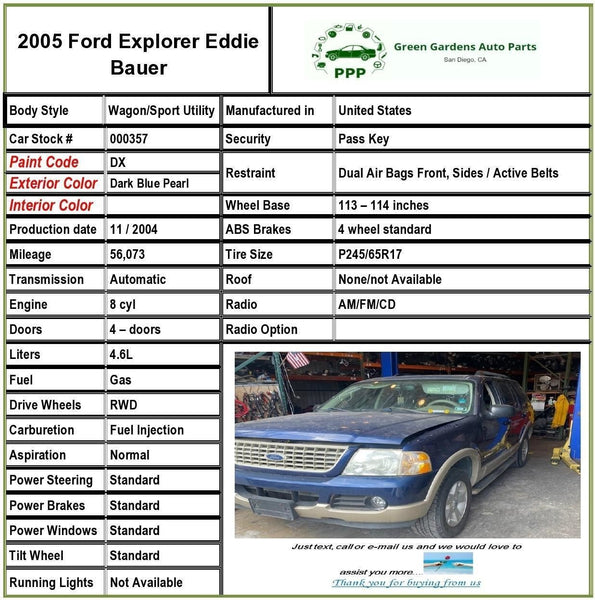 2003 - 2006 FORD EXPLORER A/c Air Compressor 4.6L 56K Miles 8 Cylinder A/T G