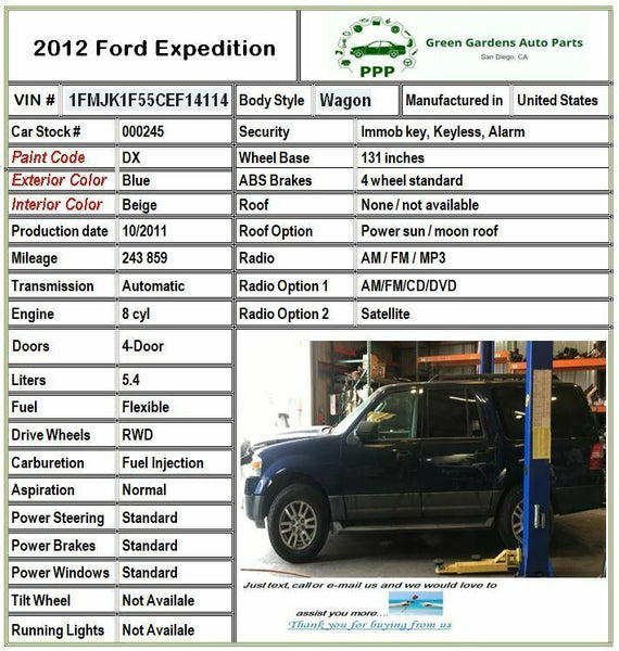 • You MUST have a working phone number for freight shipments; we will call you to confirm part fitment prior to releasing the shipment.