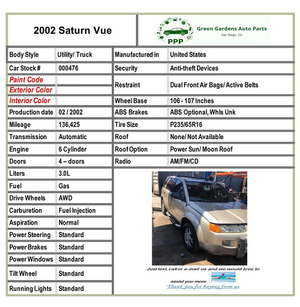 Search for more parts for SATURN VUE
