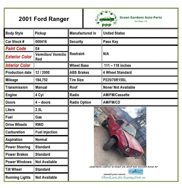 • You MUST have a working phone number for freight shipments; we will call you to confirm part fitment prior to releasing the shipment.