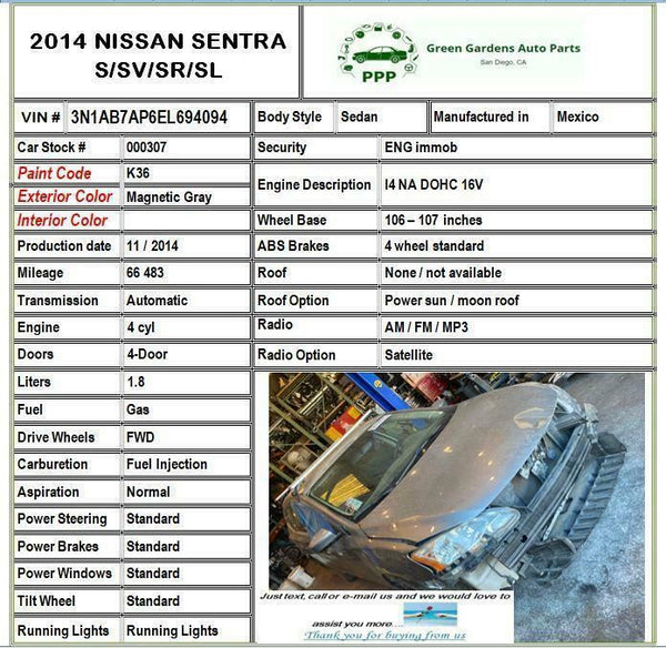 2013 - 2014 NISSAN SENTRA Lower Engine Oil Pan 1.8L A/T Sedan G
