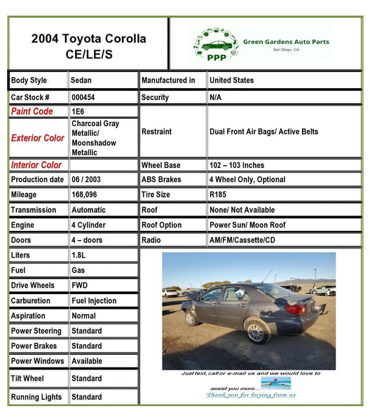 2003 - 2008 TOYOTA COROLLA Sedan 1.8L Front Brake Disc Rotor Left or Right Side